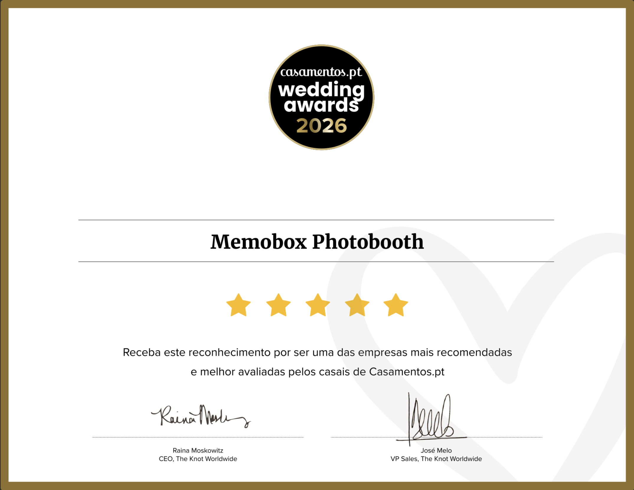 “Vencedor dos Wedding Awards 2026”